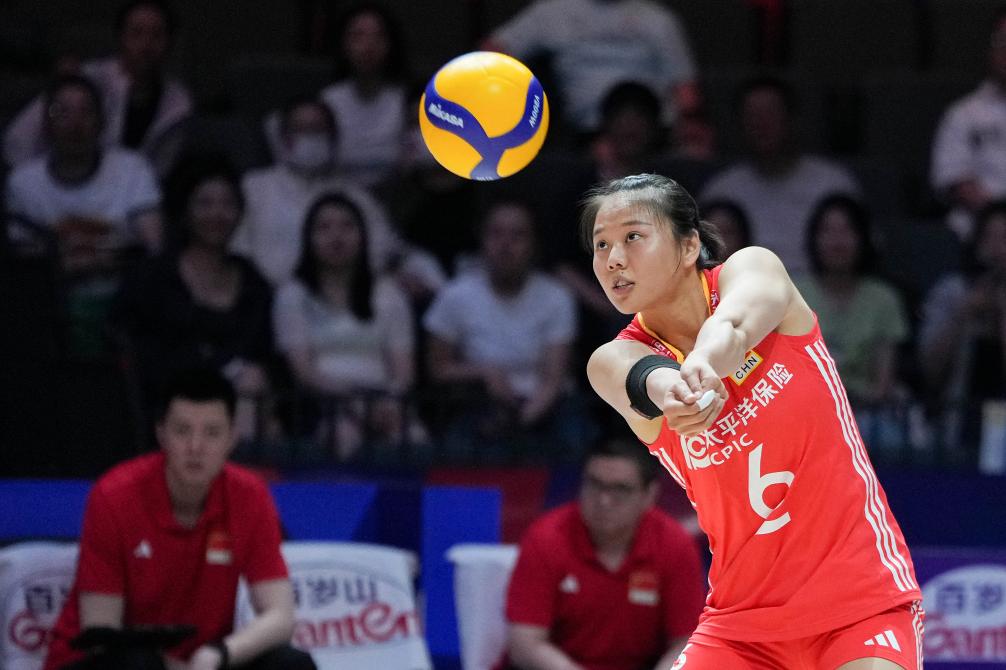 6月4日,中国队球员龚翔宇在比赛中。当日,在北京举行的2025世界女排联赛(中国北京站)小组赛中,中国队3比0战胜比利时队。新华社记者 鞠焕宗 摄