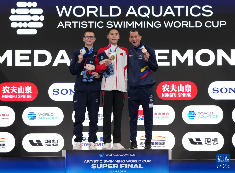 当日,2025年世界泳联花样游泳世界杯总决赛男子单人自由自选决赛在西安奥体中心游泳跳水馆举行。