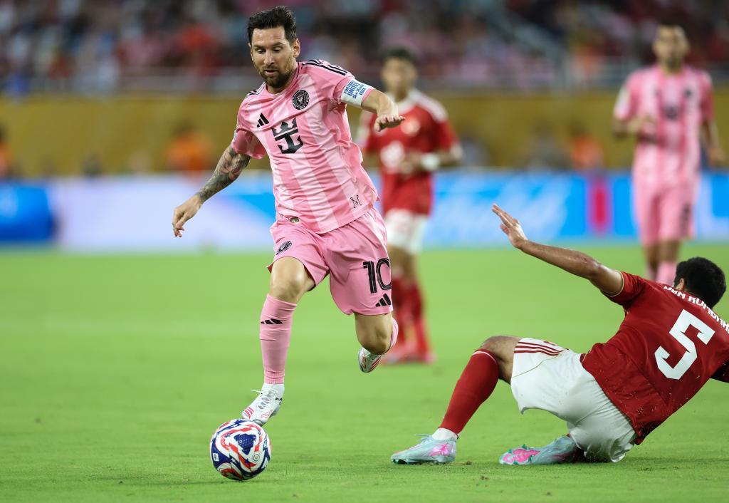 6月14日,迈阿密国际队球员梅西(左)在比赛中带球突破。新华社记者 李明 摄