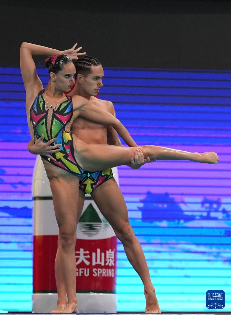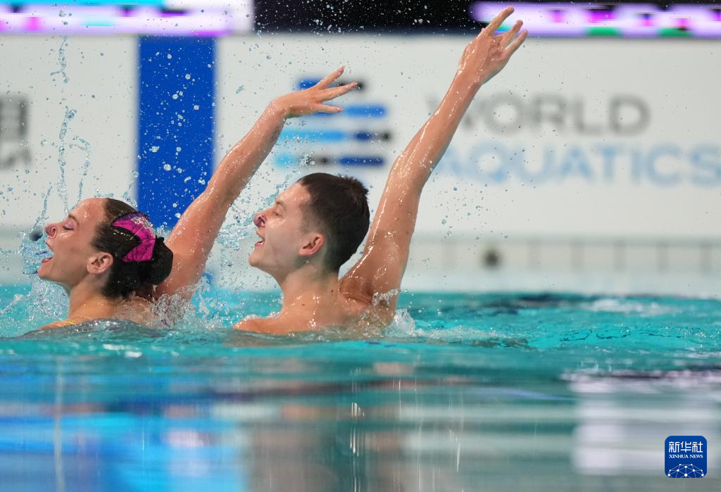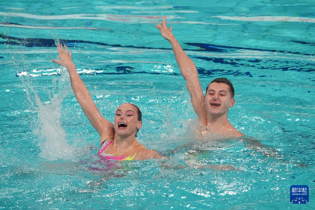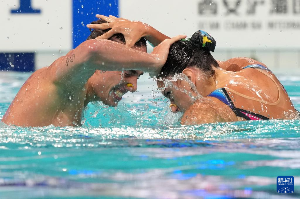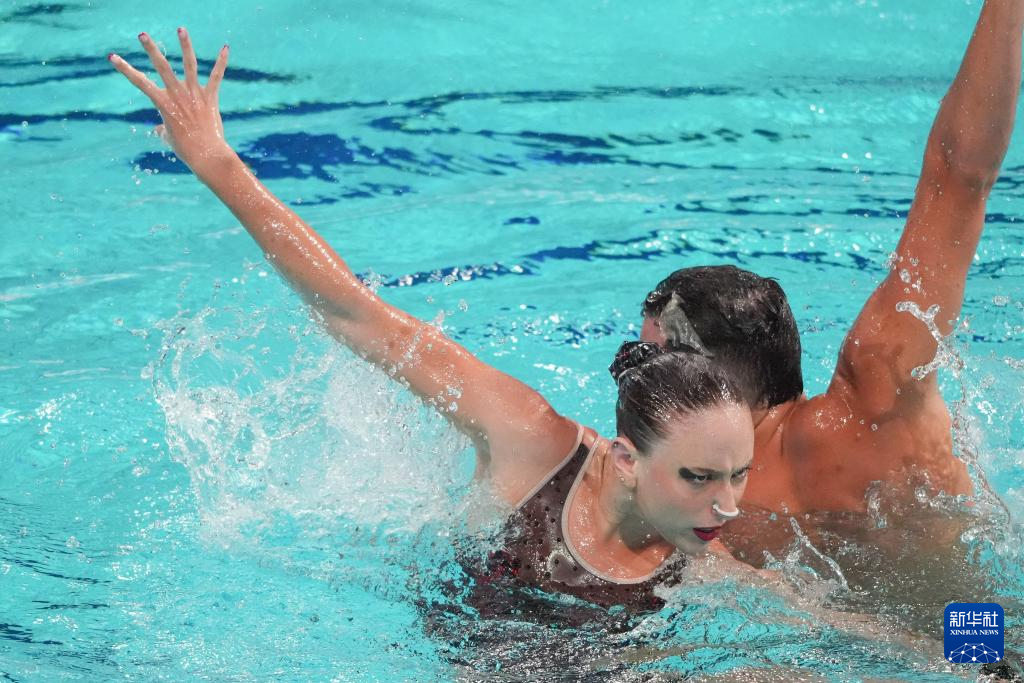当日,2025年花样游泳世界杯总决赛混合双人技术自选决赛在西安奥体中心游泳跳水馆举行。