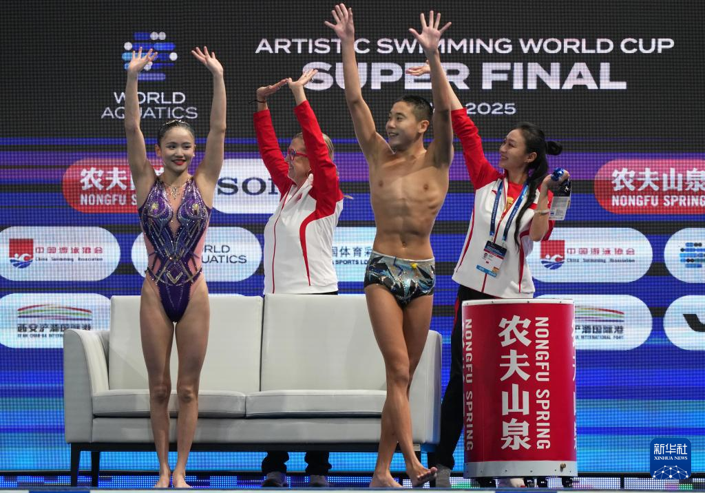 当然,在西安举行的2025年花样游泳世界杯总决赛混合双人技术自选决赛中,中国组合郭牧也/郭思彤获得亚军。