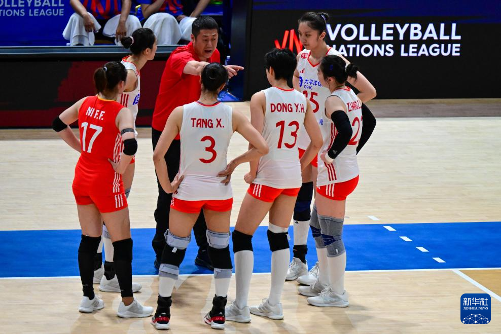 6月19日,中国队主教练赵勇(后中)在比赛间隙指导队员。新华社记者 朱炜 摄