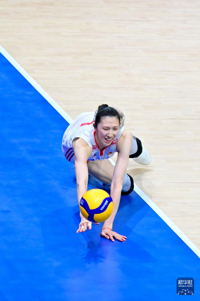 6月19日,中国队球员吴梦洁在比赛中救球。新华社记者 朱炜 摄