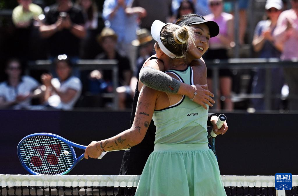 6月22日,王欣瑜(后)和万卓索娃赛后拥抱。新华社/路透