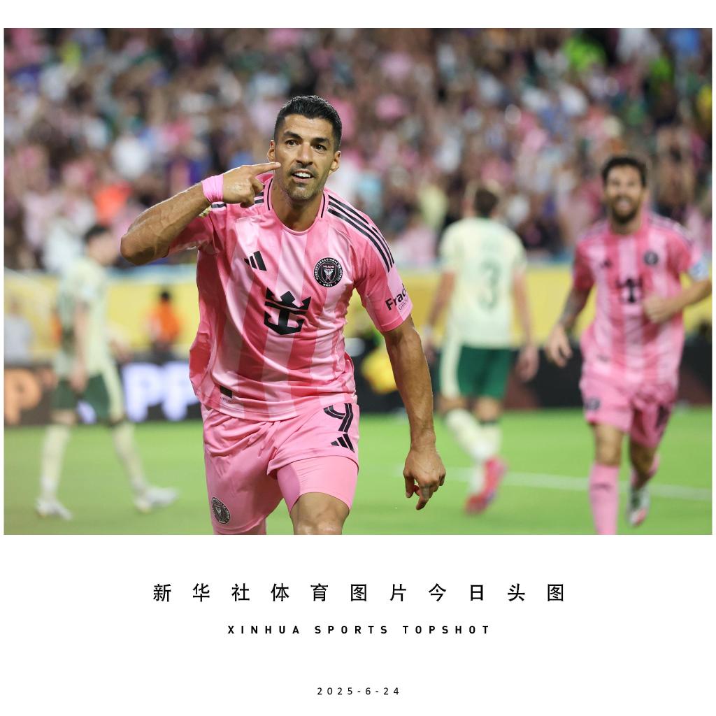 6月23日,迈阿密国际队球员苏亚雷斯庆祝进球。