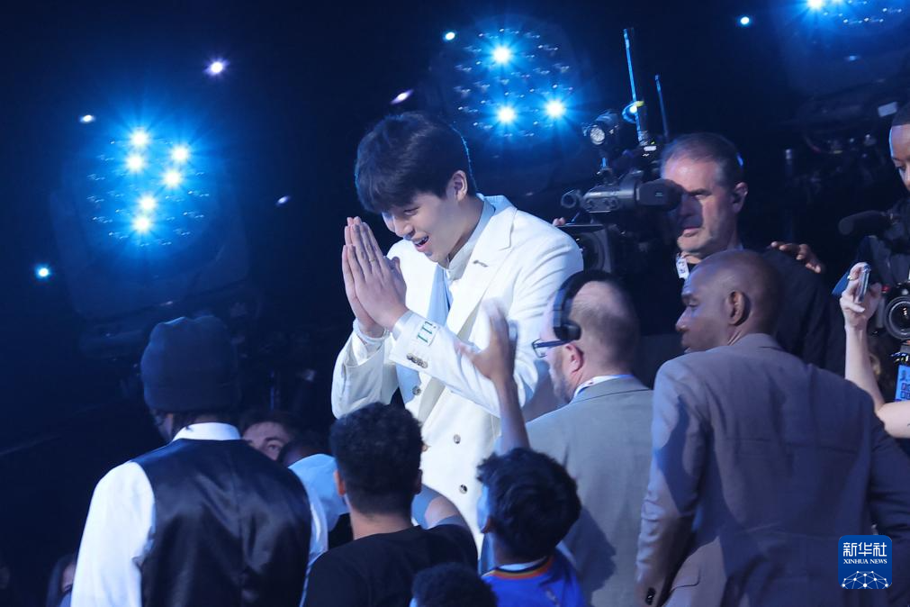 6月25日,杨瀚森在美职篮(NBA)新秀选拔大会上。新华社/路透
