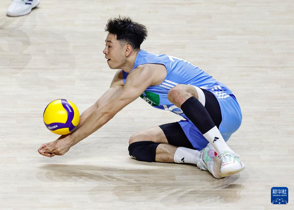 6月26日,中国队球员曲宗帅在比赛中垫球。