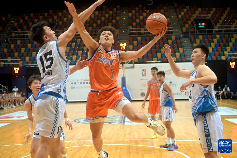 6月26日,福建晋江文旅队球员林韦恺(中)在比赛中上篮。新华社发(卢炳辉摄)
