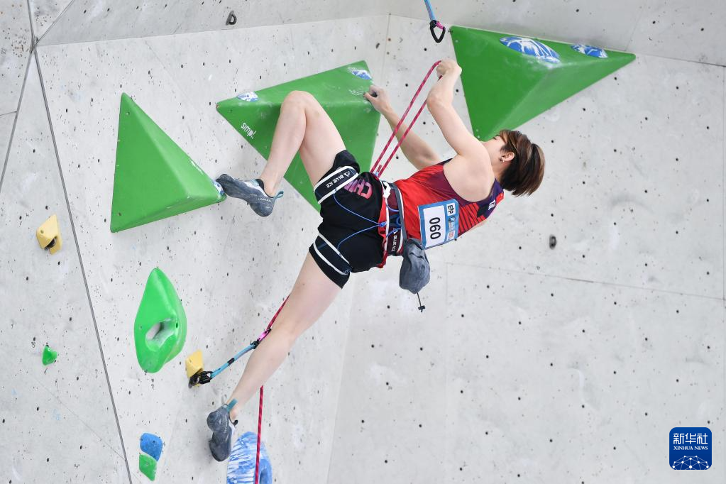 6月28日,中国选手韦雅丽在女子难度攀岩资格赛中。她最终无缘半决赛。