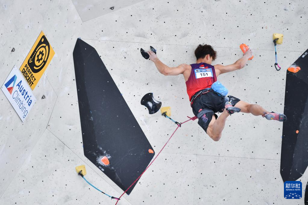 6月28日,中国选手姚晋伟在男子难度攀岩资格赛中。他最终无缘半决赛。