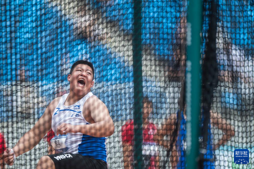 6月28日,成都市校队选手余浩在男子少年U18组铁饼及格赛中。最终,他无缘决赛。