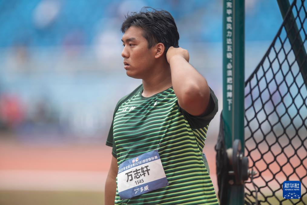 6月28日,江苏队选手万志轩在男子少年U18组铁饼及格赛中。最终,他以58米75的成绩晋级决赛。