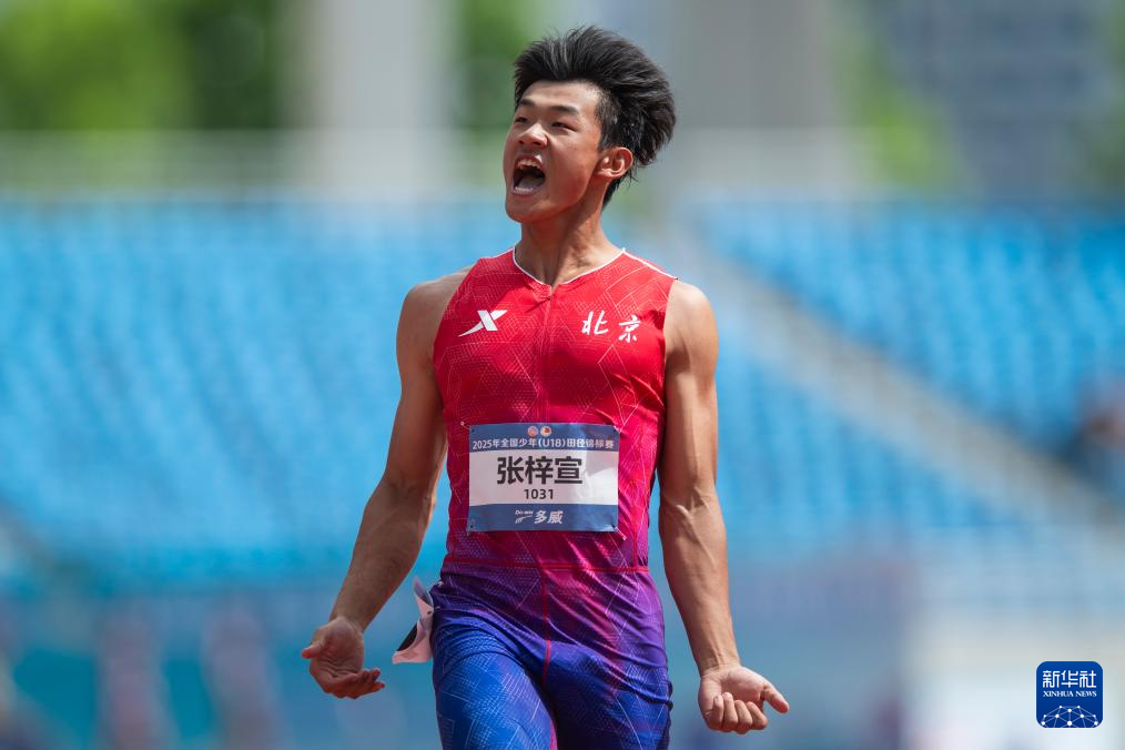 6月28日,北京队选手张梓宣在男子少年U18组100米预赛冲线后。最终,他以10秒68的成绩晋级半决赛。