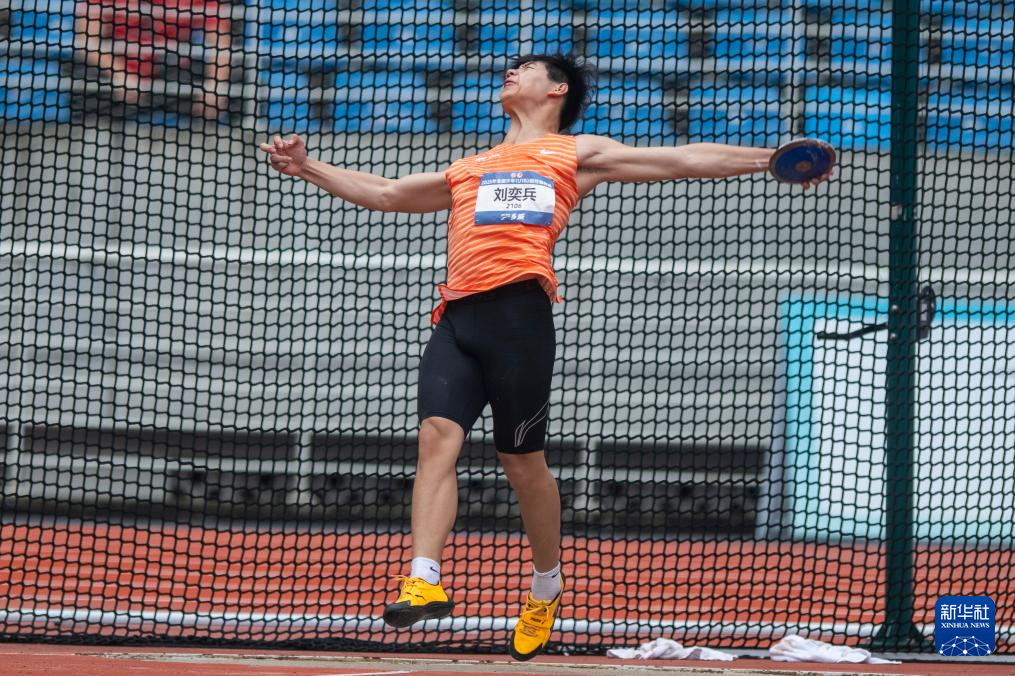 6月28日,浙江体彩队选手刘奕兵在男子少年U18组铁饼及格赛中。最终,他无缘决赛。