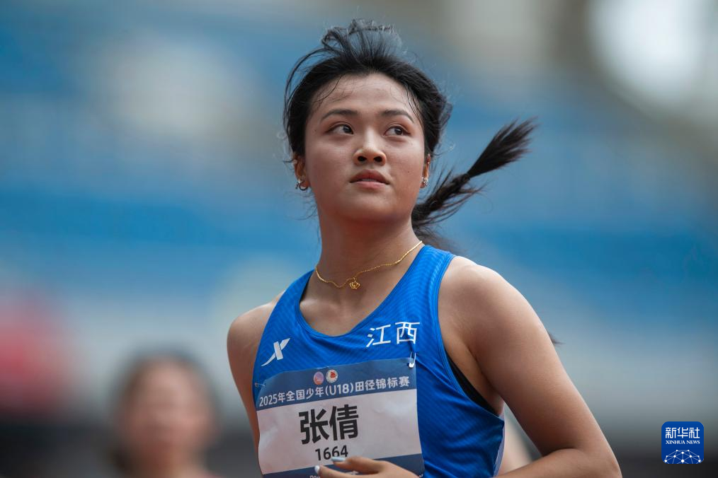 6月28日,江西队选手张倩在女子少年U18组100米预赛冲线后。最终,她以12秒03的成绩晋级半决赛。