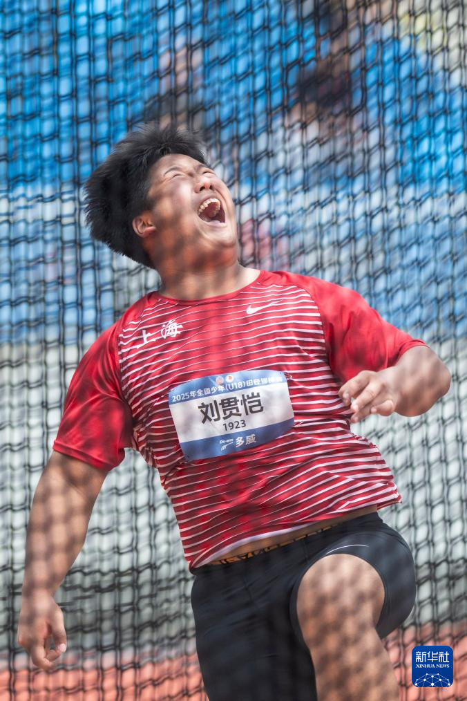 6月28日,上海队选手刘贯恺在男子少年U18组铁饼及格赛中。最终,他以55米16的成绩晋级决赛。