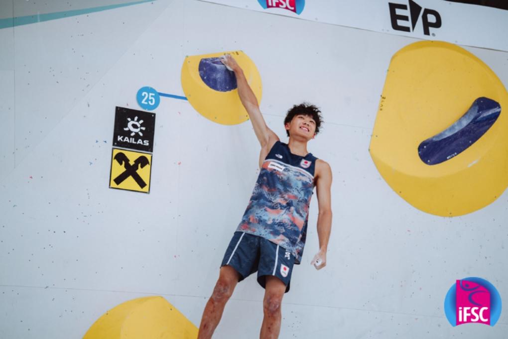 安乐宙斗在因斯布鲁克站比赛中。图片来自国际攀联官方图集