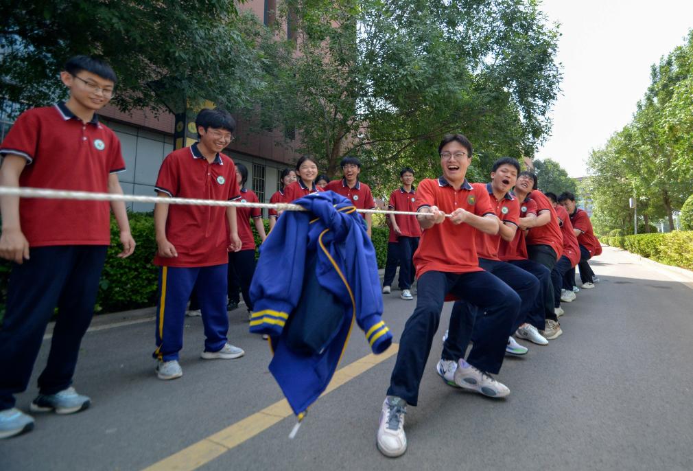 5月20日,河北省邯郸市邯山区第一中学高三学生开展拔河比赛。新华社发(李昊摄)
