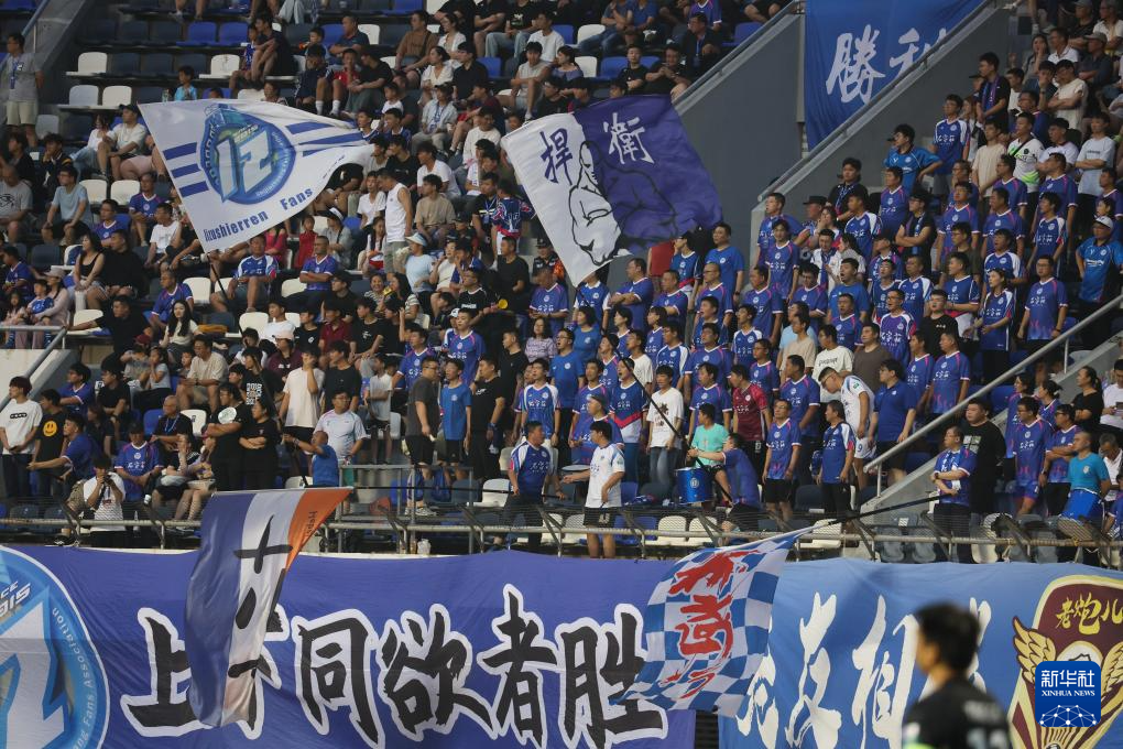 6月29日,球迷在现场为石家庄功夫队助威。新华社发(梁子栋摄)