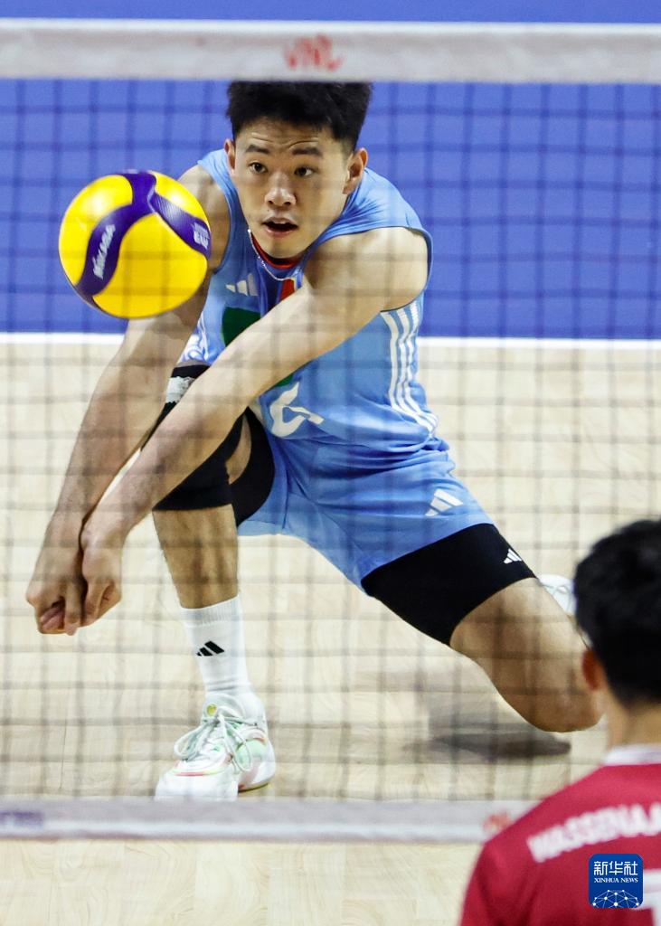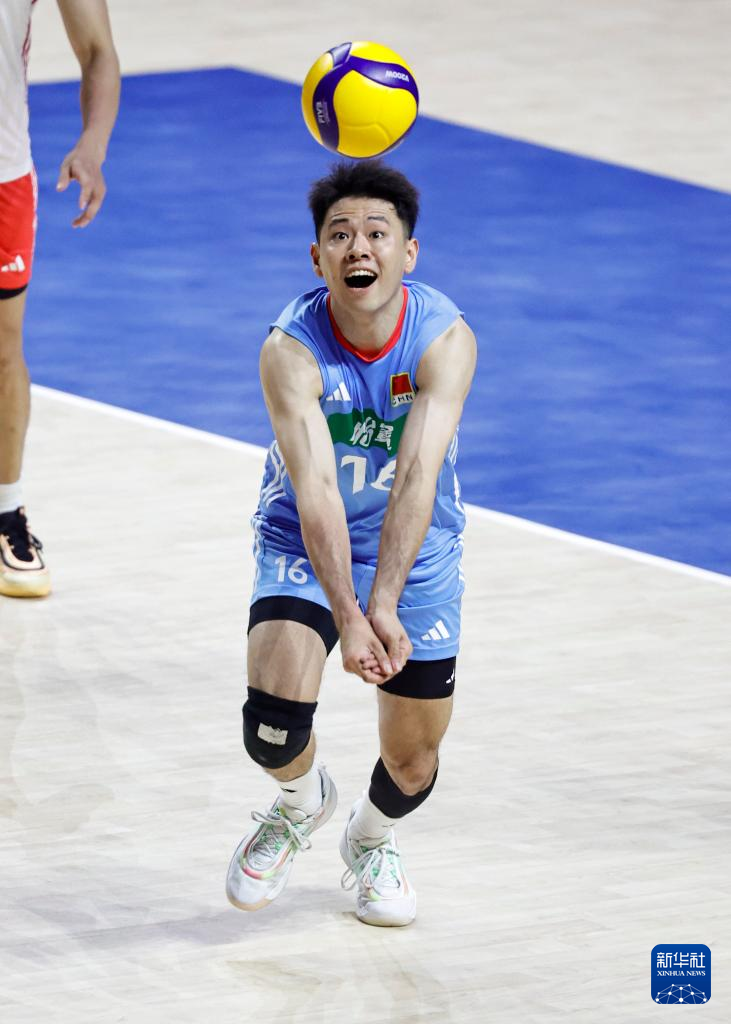 6月29日,中国队球员曲宗帅在比赛中接球。新华社发(乔尔·莱纳摄)