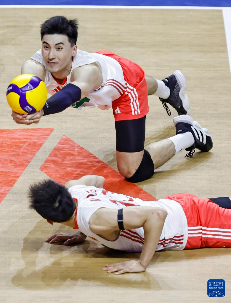 6月29日,中国队球员于垚辰(上)在比赛中接球。新华社发(乔尔·莱纳摄)