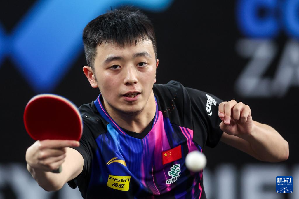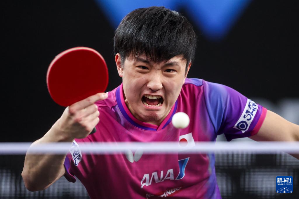 6月29日,日本选手张本智和在男子单打决赛中回球。最终,他4比0战胜中国选手陈垣宇,获得冠军。新华社发(伊戈尔·克拉利摄)