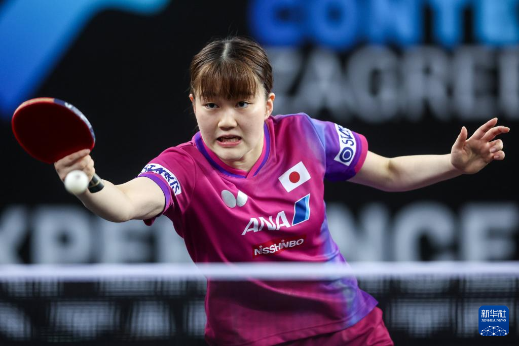6月29日,日本选手大藤沙月在女子单打决赛中。最终,她4比2战胜中国选手石洵瑶,获得冠军。新华社发(伊戈尔·克拉利摄)