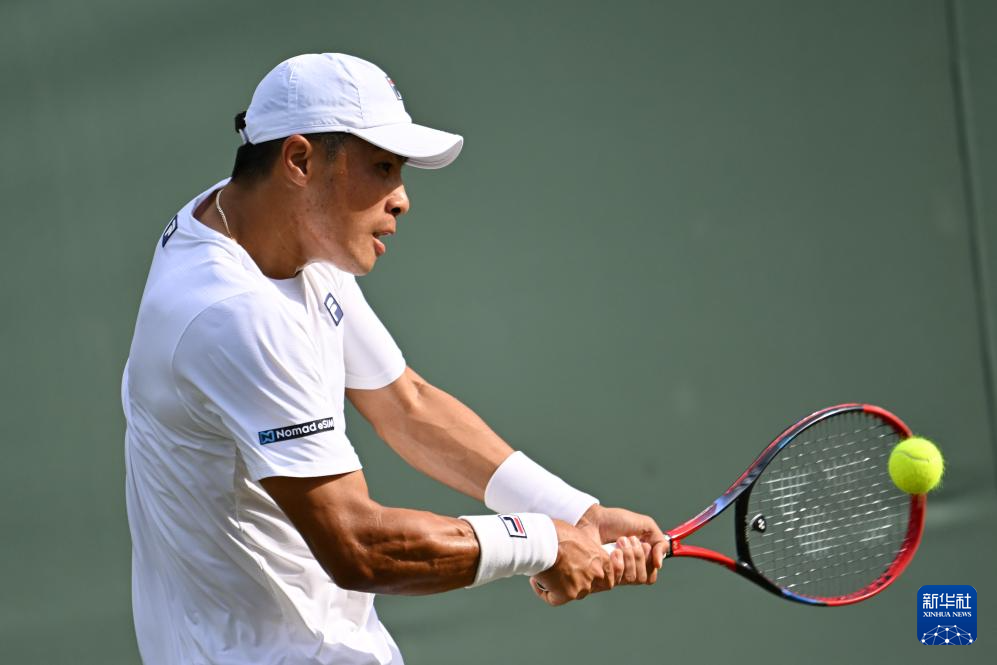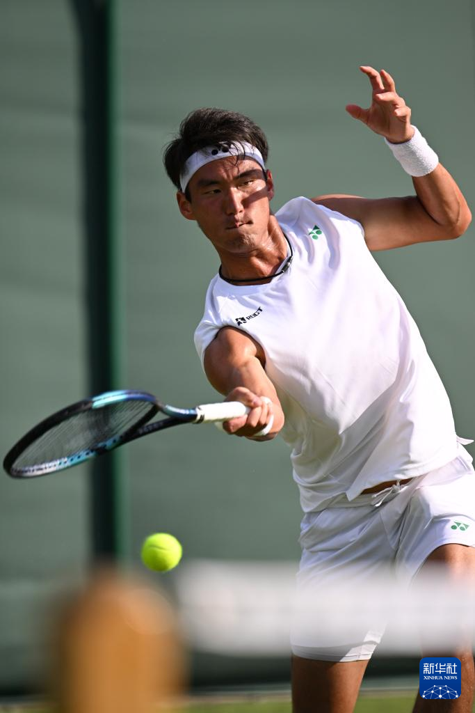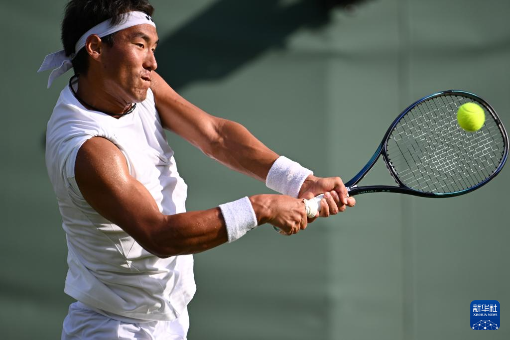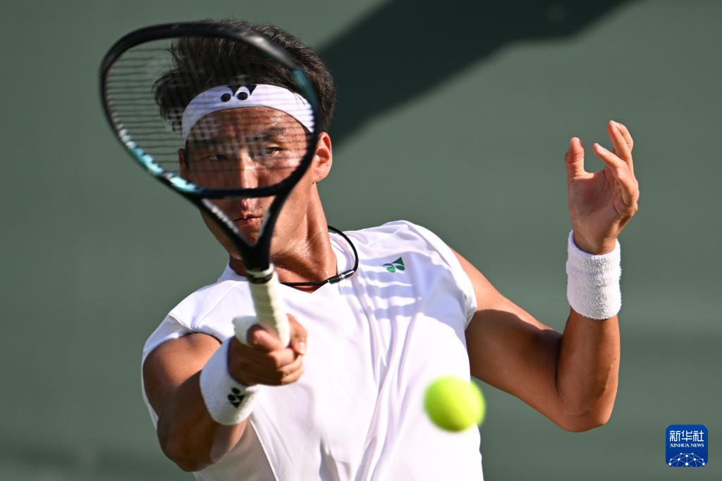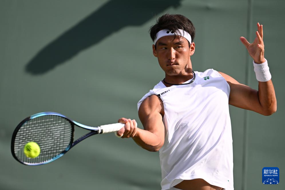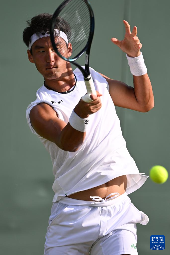 7月1日,美国选手中岛布兰登在比赛中回球。新华社记者 赵丁喆 摄