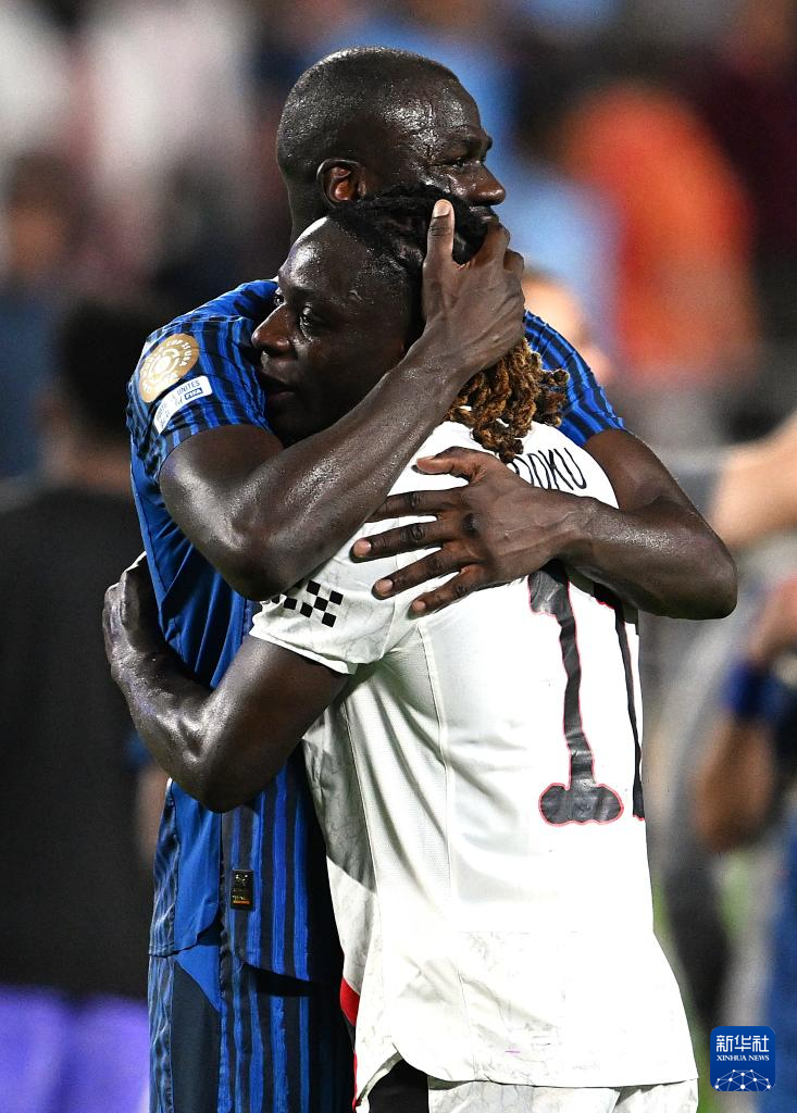 6月30日,利雅得新月队球员库利巴利在赛后安慰曼彻斯特城队球员多库(前)。新华社记者 吴晓凌 摄