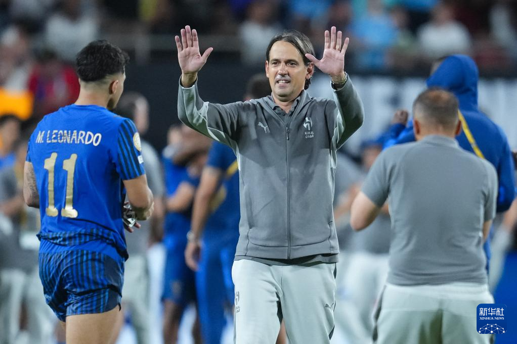 6月30日,利雅得新月队主教练西蒙尼·因扎吉在赛后庆祝。新华社记者 许畅 摄