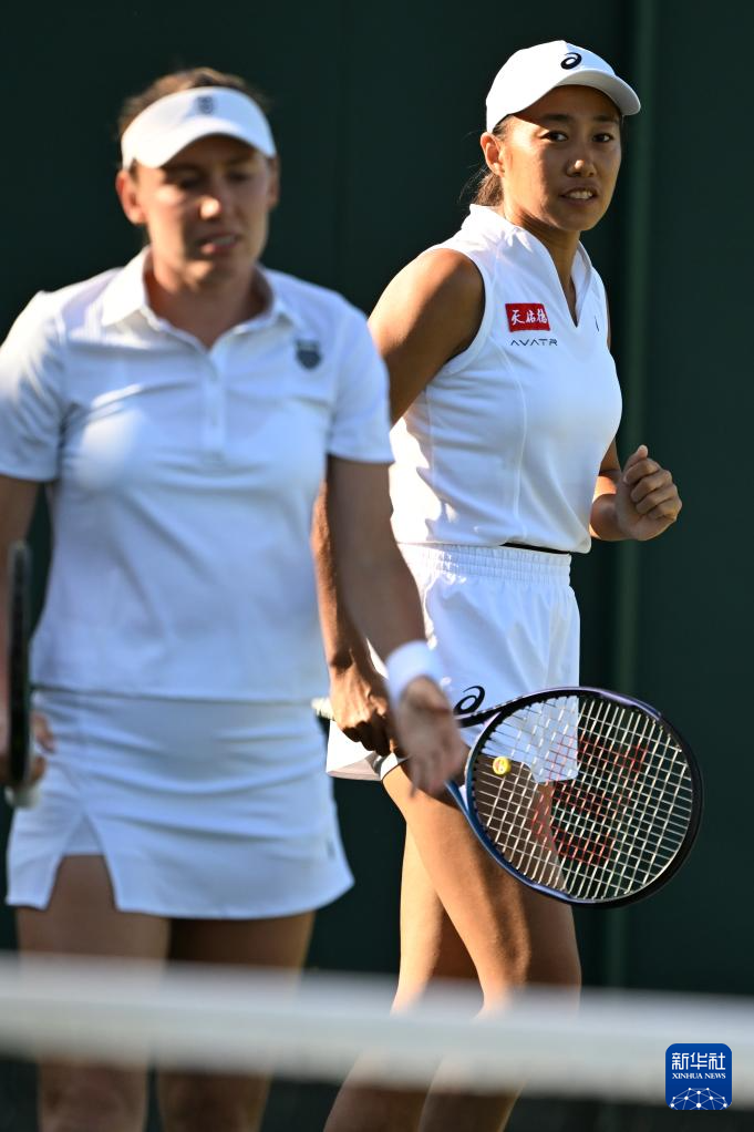 7月2日,张帅(右)/亚历山德罗娃在比赛中。新华社记者 赵丁喆 摄