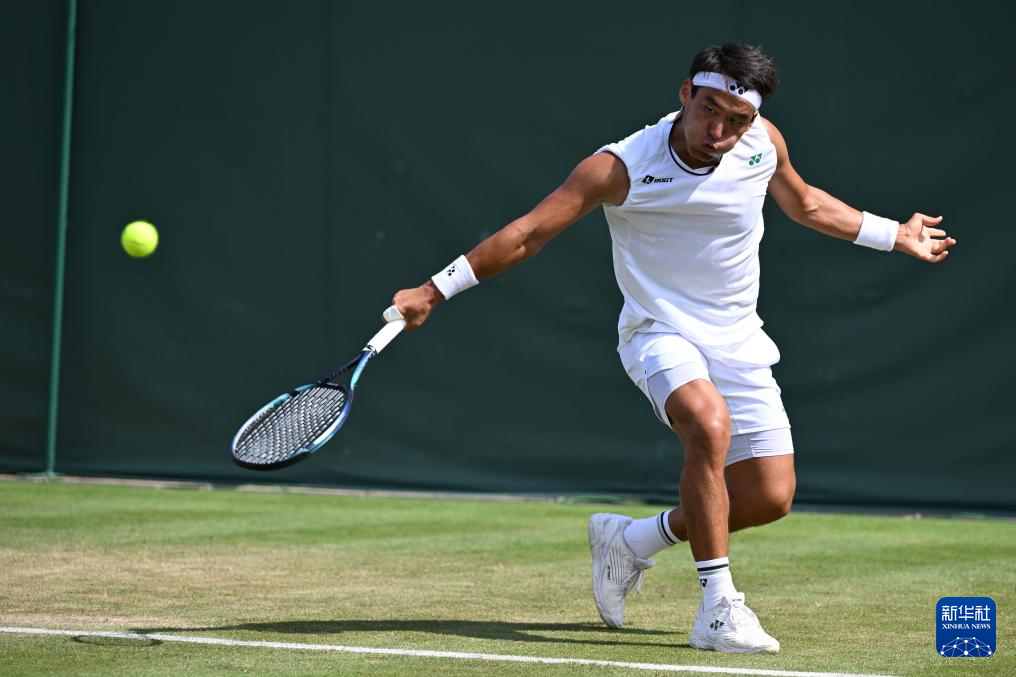 7月2日,布云朝克特在比赛中回球。新华社记者 赵丁喆 摄