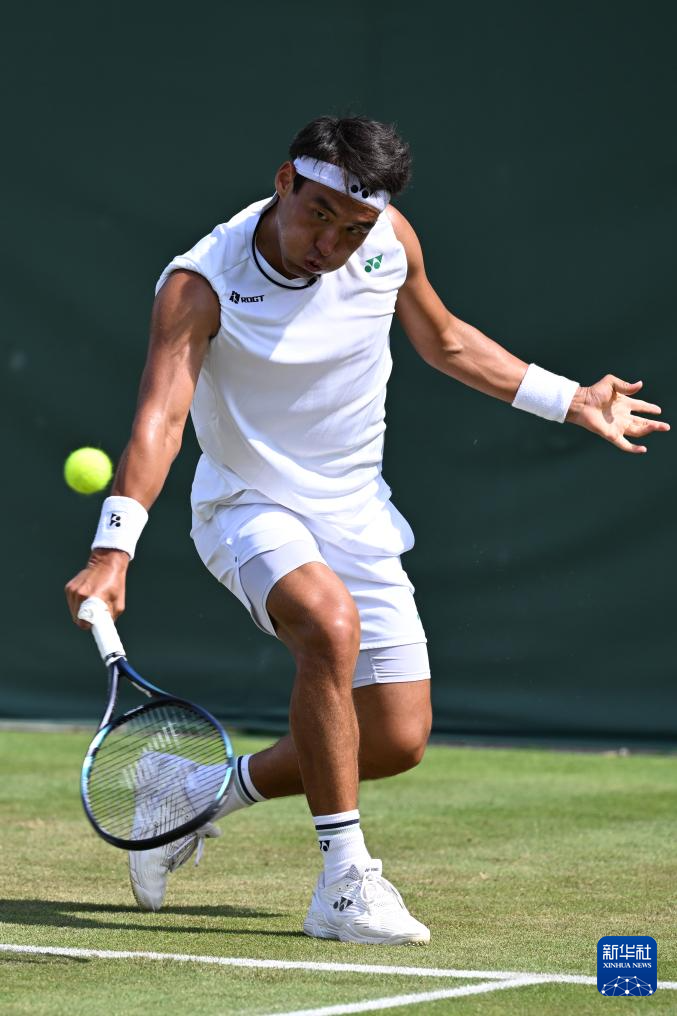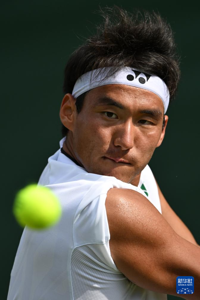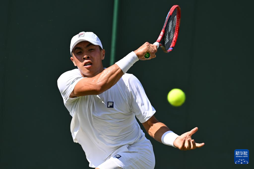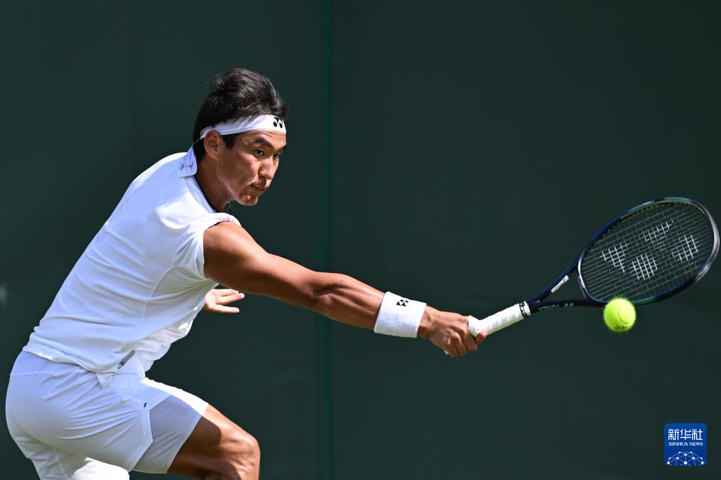 7月2日,中岛布兰登在比赛中回球。新华社记者 赵丁喆 摄