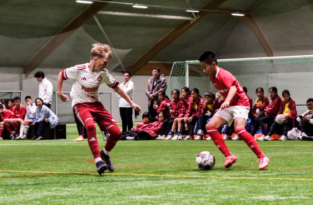 当天下午,比赛在罗瓦涅米桑塔体育中心室内足球场举行。女子组比赛率先开场,紧接着进行男子组比赛。中方两支代表队分别对阵当地圣诞老人足球俱乐部U12女子和男子梯队。比赛特别邀请罗瓦涅米市官方认证的“圣诞老人”亲临现场,为比赛开球,并为孩子们加油助威。