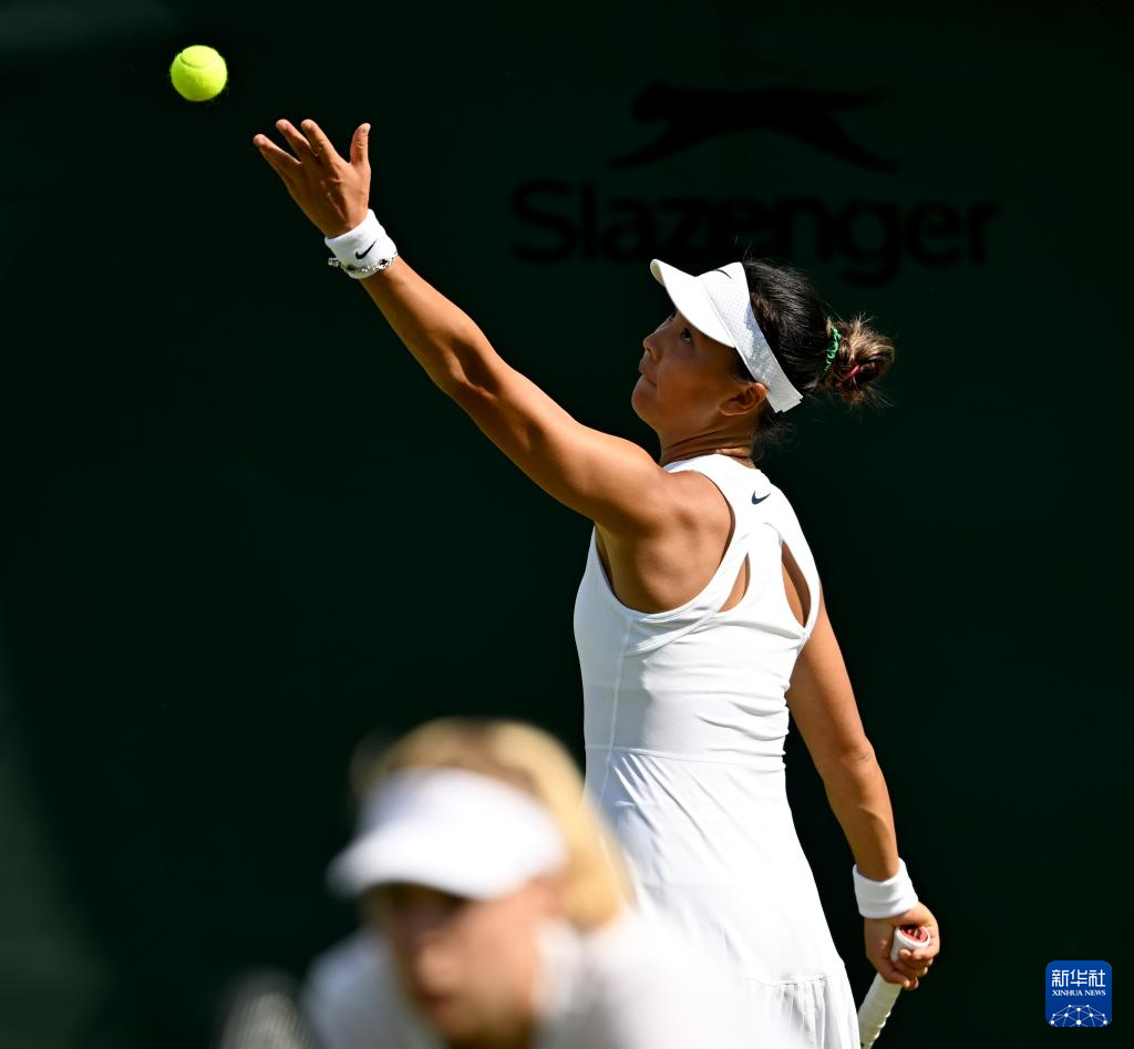 7月2日,袁悦(右)/布林科娃在比赛中。新华社记者 李颖 摄