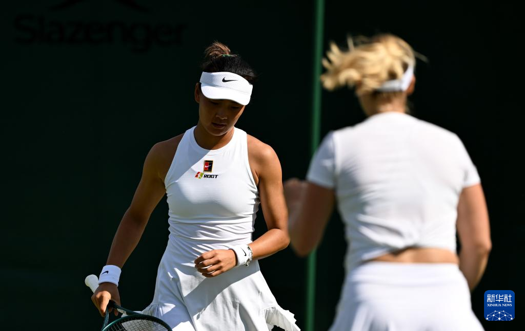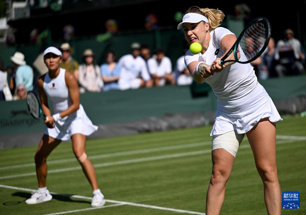 7月2日,袁悦(左)/布林科娃在比赛中。新华社记者 李颖 摄