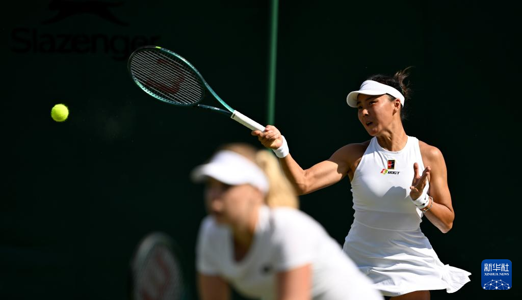 7月2日,袁悦/布林科娃(右)在比赛中。新华社记者 李颖 摄