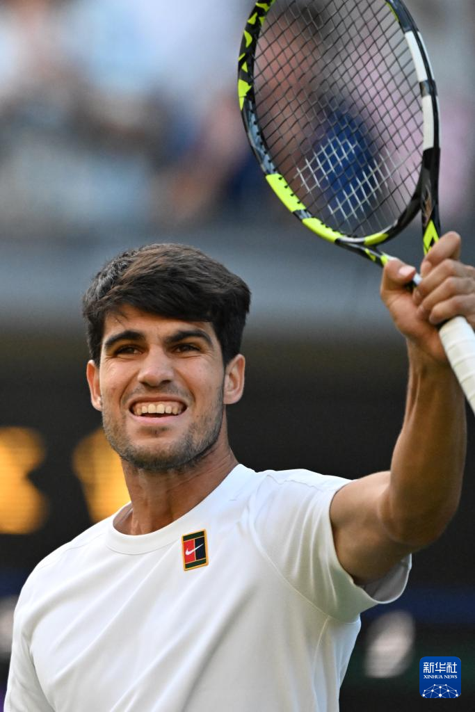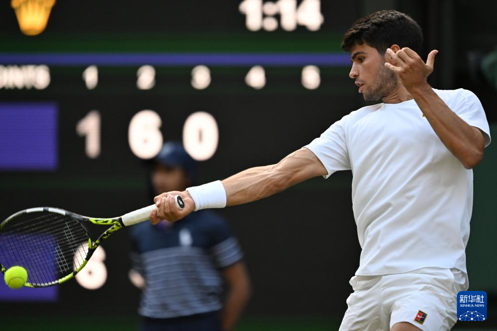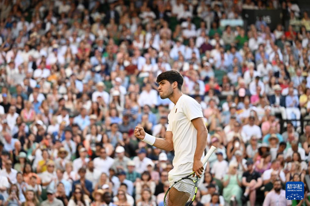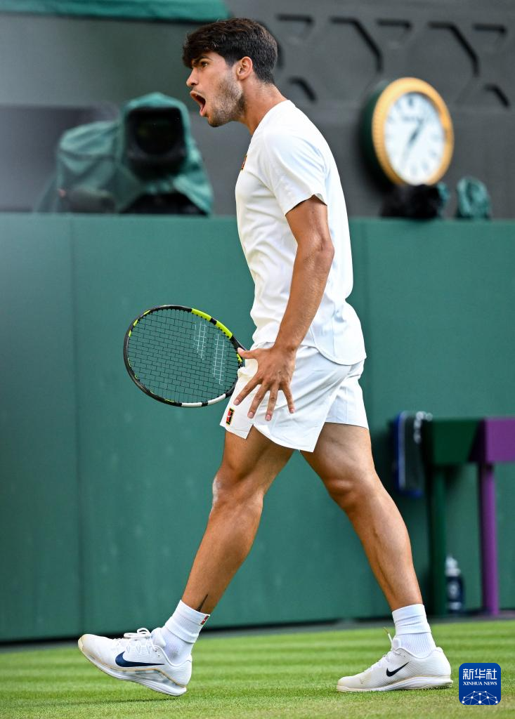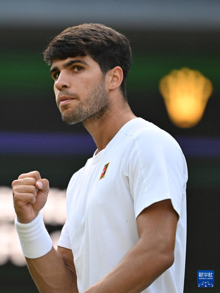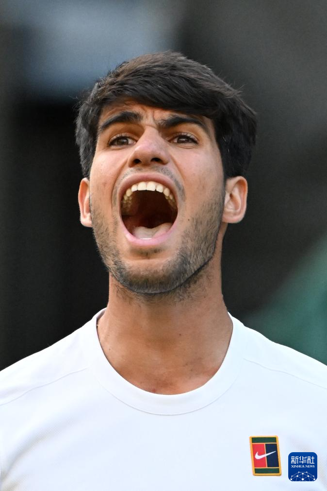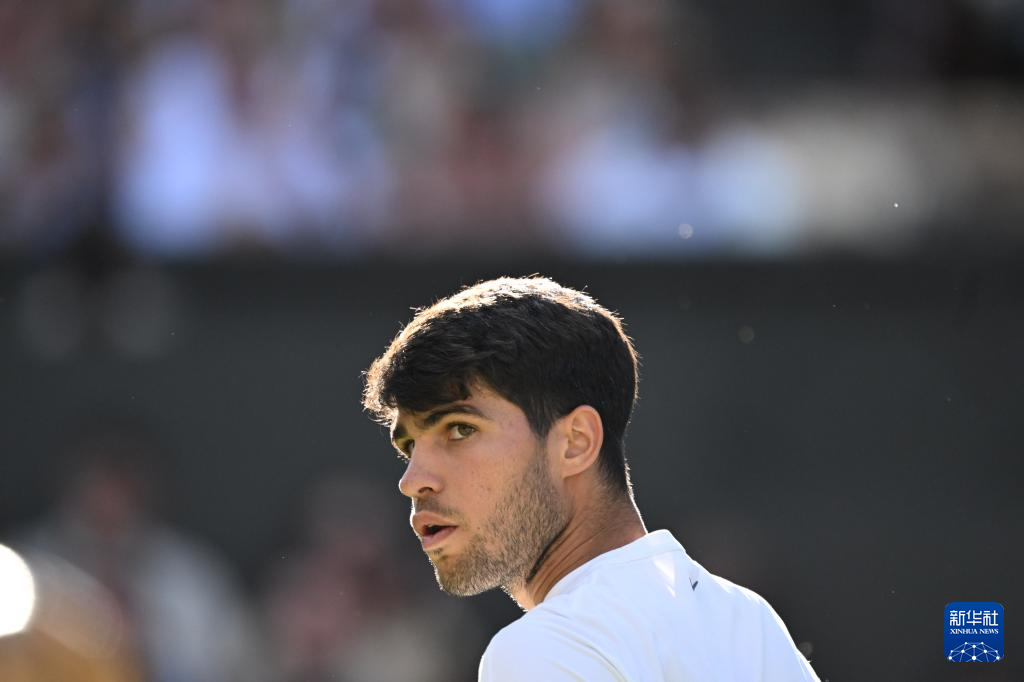 7月4日,阿尔卡拉斯在比赛中。新华社记者 赵丁喆 摄