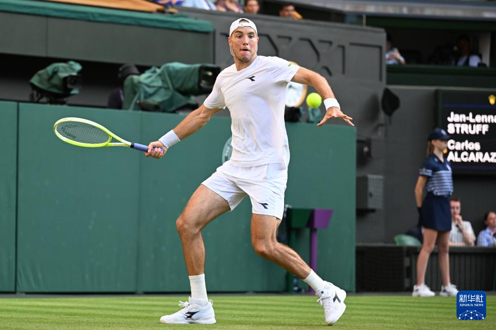 7月4日,施特鲁夫在比赛中回球。新华社记者 赵丁喆 摄