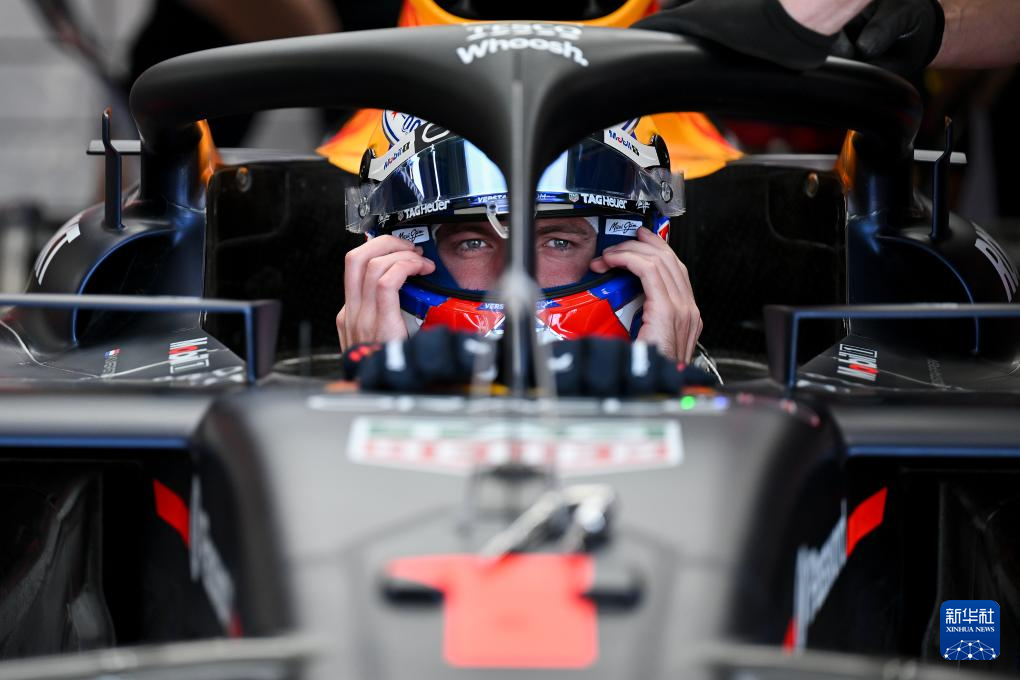 7月4日,红牛车队荷兰车手维斯塔潘(右)在练习赛中。新华社记者 吴鲁 摄