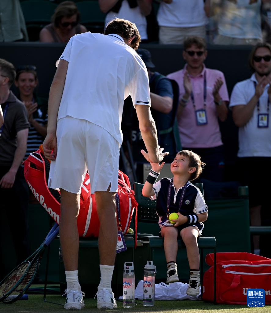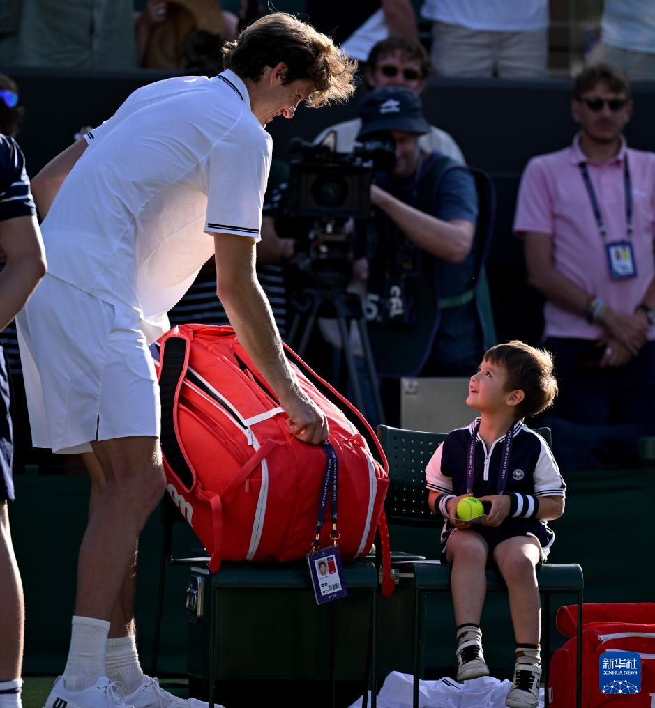 7月4日,尼古拉斯·贾里(左)在获胜后与儿子互动。新华社记者 李颖 摄