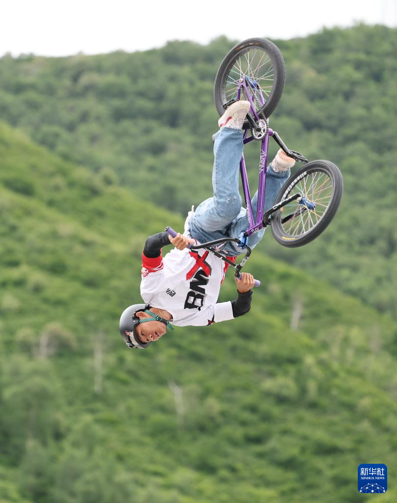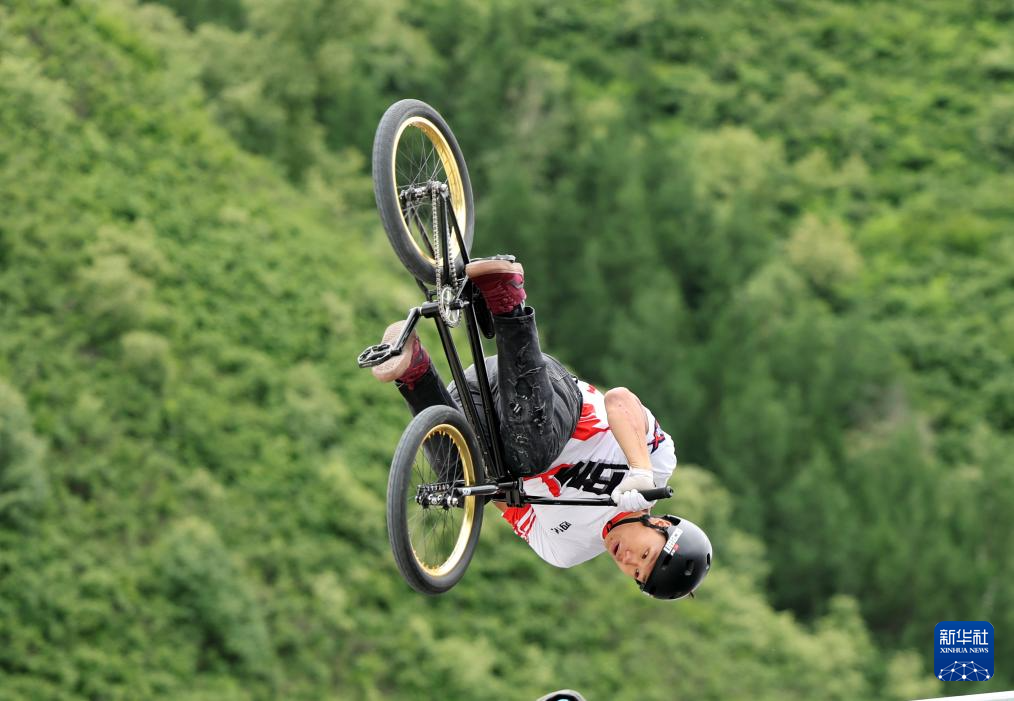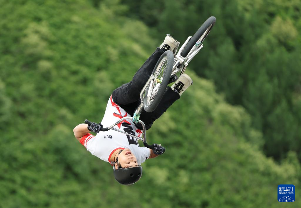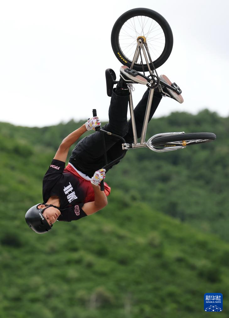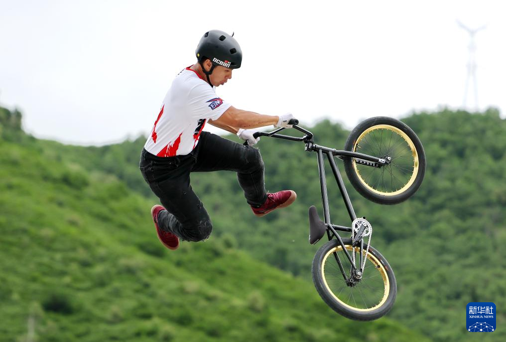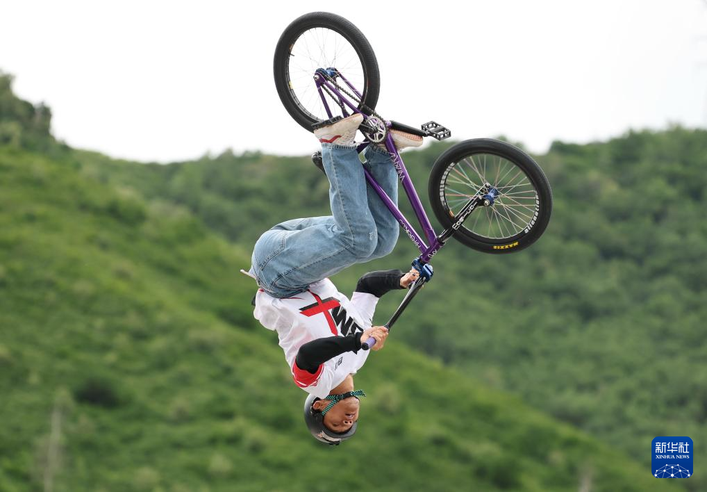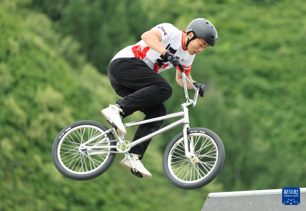 7月5日,安徽BMX自由式小轮车队选手刘星在精英男子组资格赛第一轮比赛中。最终,他晋级下一轮。新华社记者 杨世尧 摄