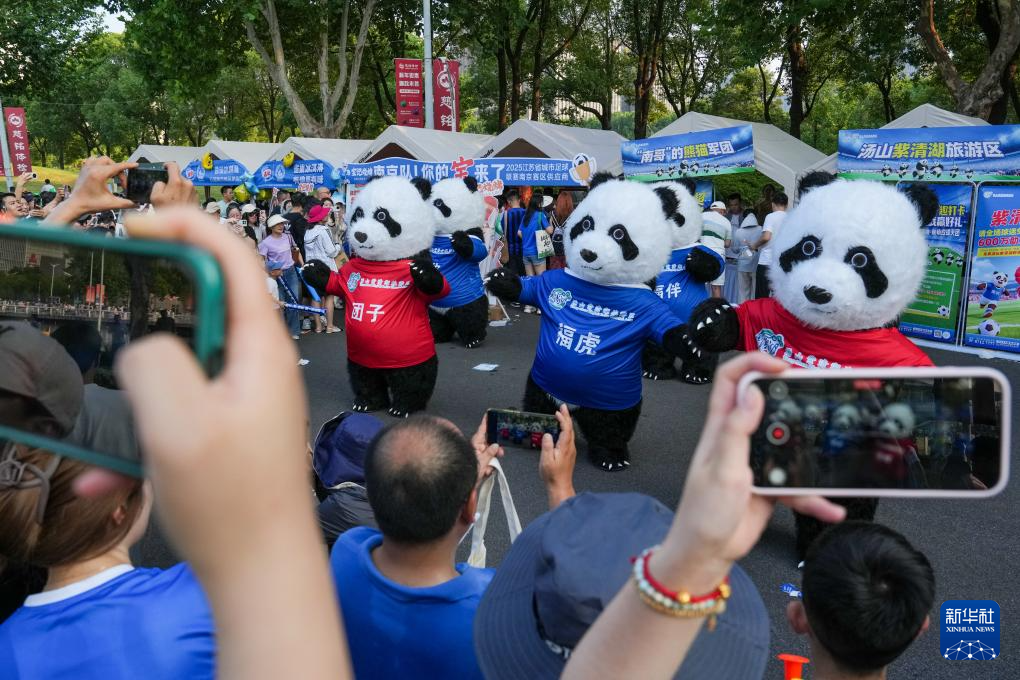 7月5日,比赛前,球迷在场外的文化市集观看表演。