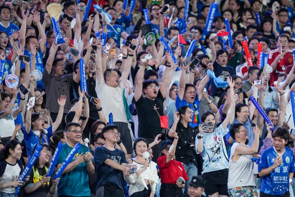 7月5日,南京队球迷在现场为球队助威。
