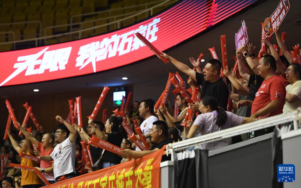 7月6日,石家庄队球迷为球队助威。新华社发(张晓峰摄)