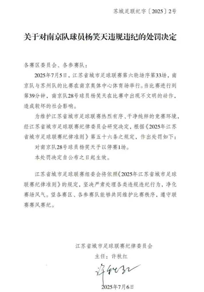 7月5日,在江苏南京举行的苏超第六轮比赛中,南京队主场0比0战平苏州队。 新华社记者 李博 摄