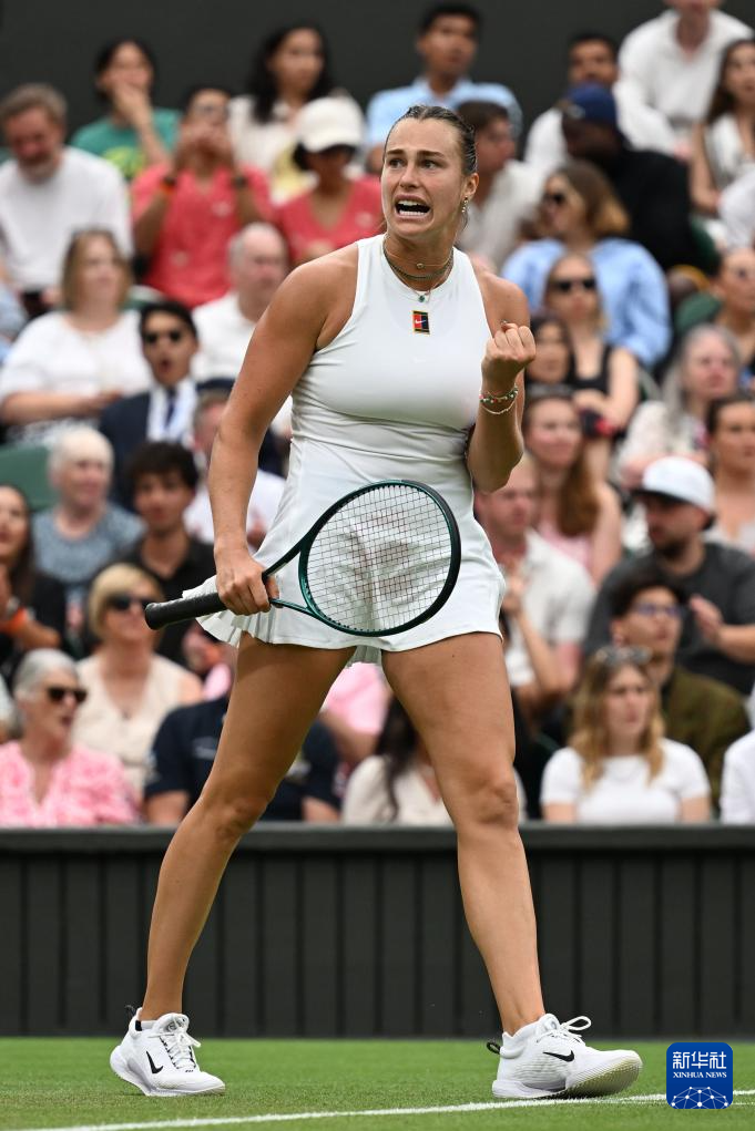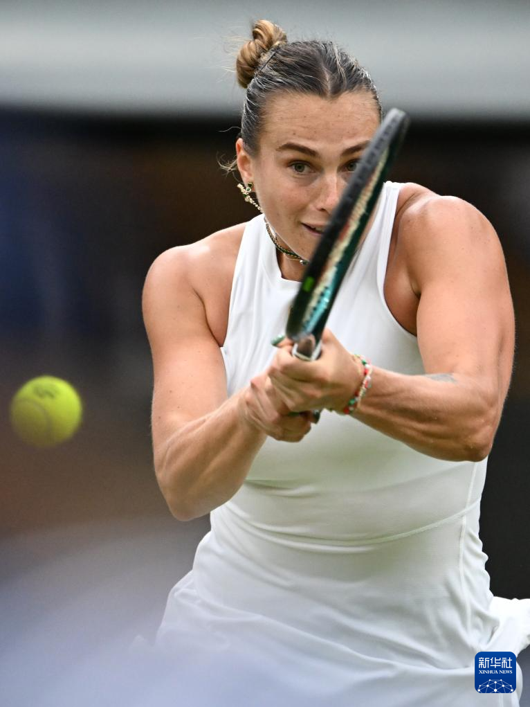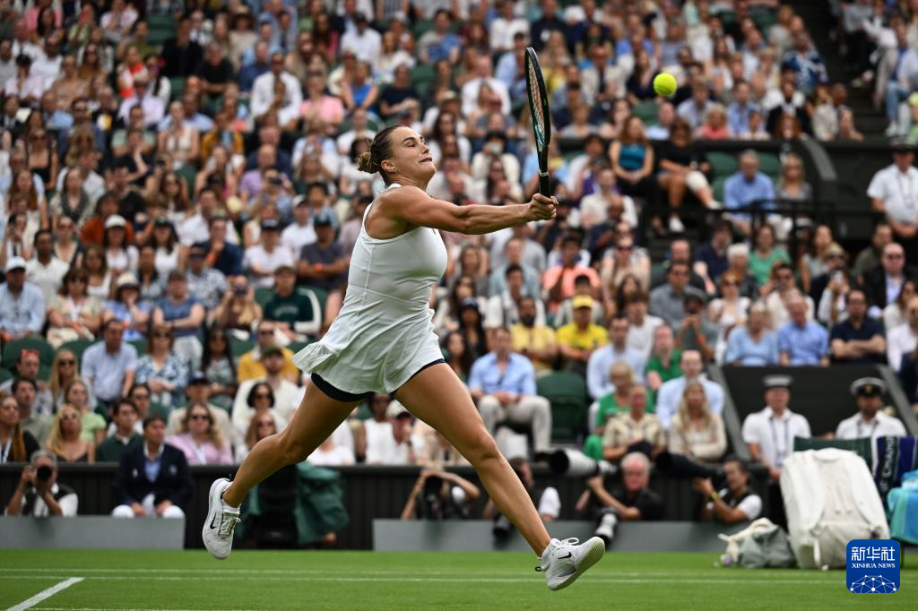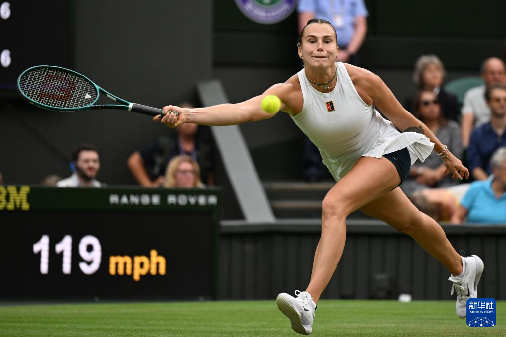 7月6日,萨巴伦卡在比赛中回球。新华社记者 赵丁喆 摄