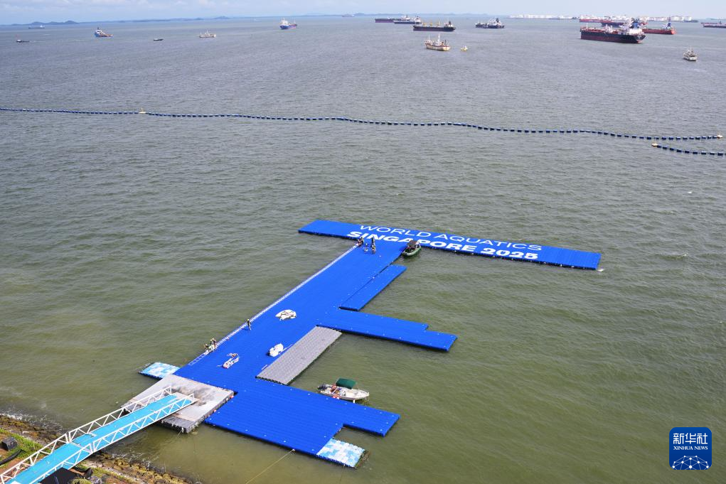 这是7月7日在新加坡拍摄的2025年世界游泳锦标赛高台跳水项目比赛场地。新华社发(邓智炜摄)