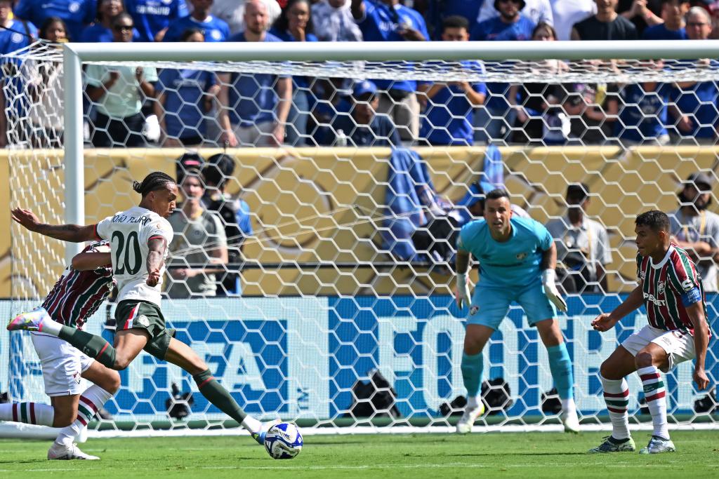 7月8日,切尔西队球员若昂·佩德罗(前左)射门得分。新华社记者 李睿 摄