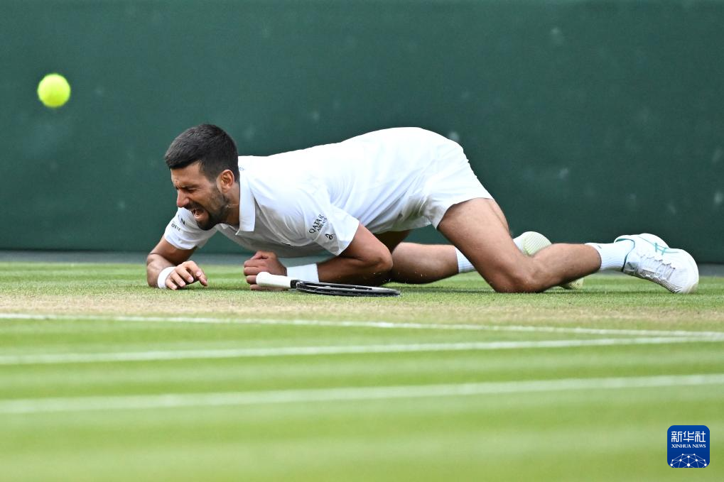 7月9日,焦科维奇在比赛中摔倒。新华社记者 赵丁喆 摄